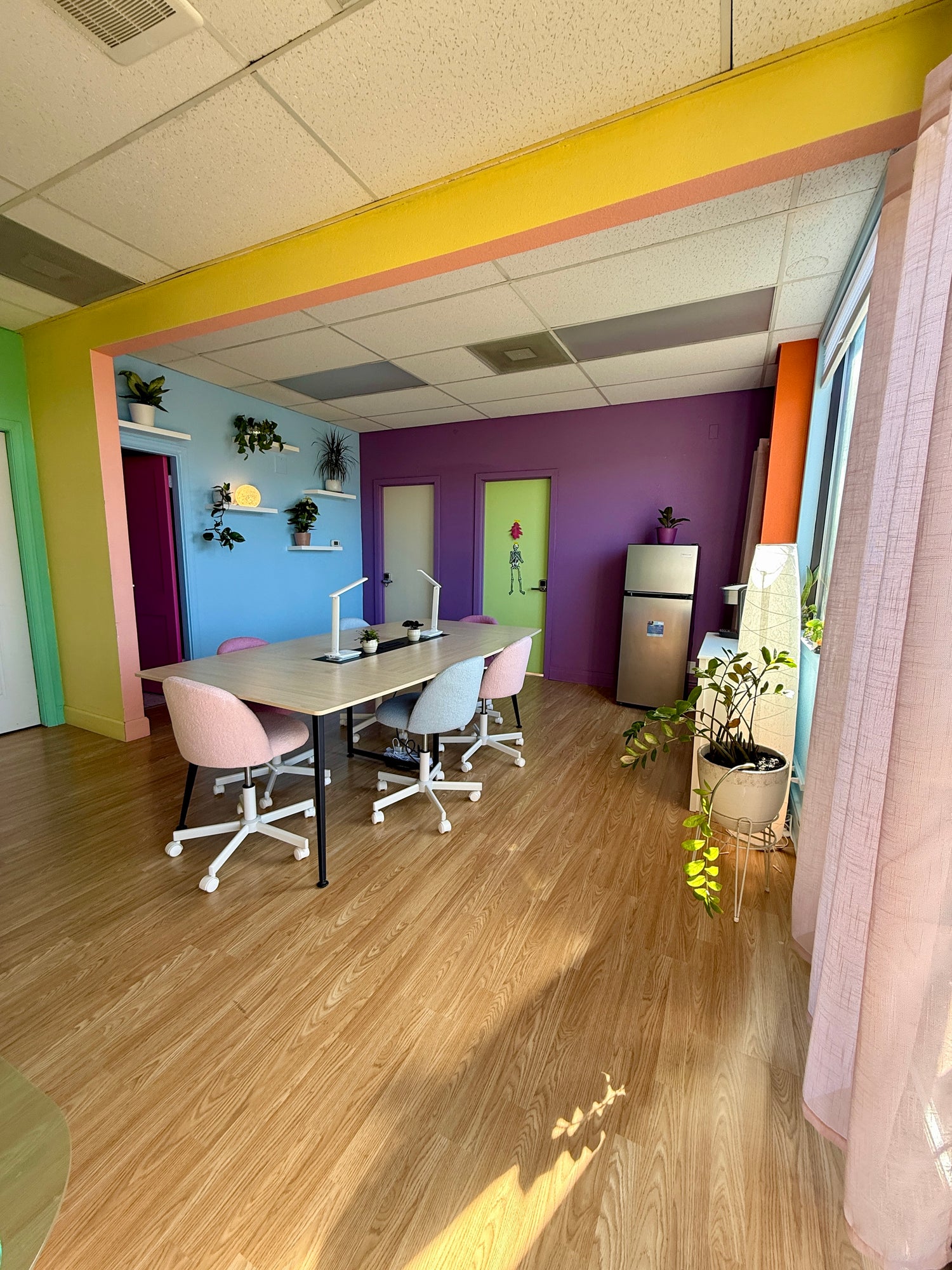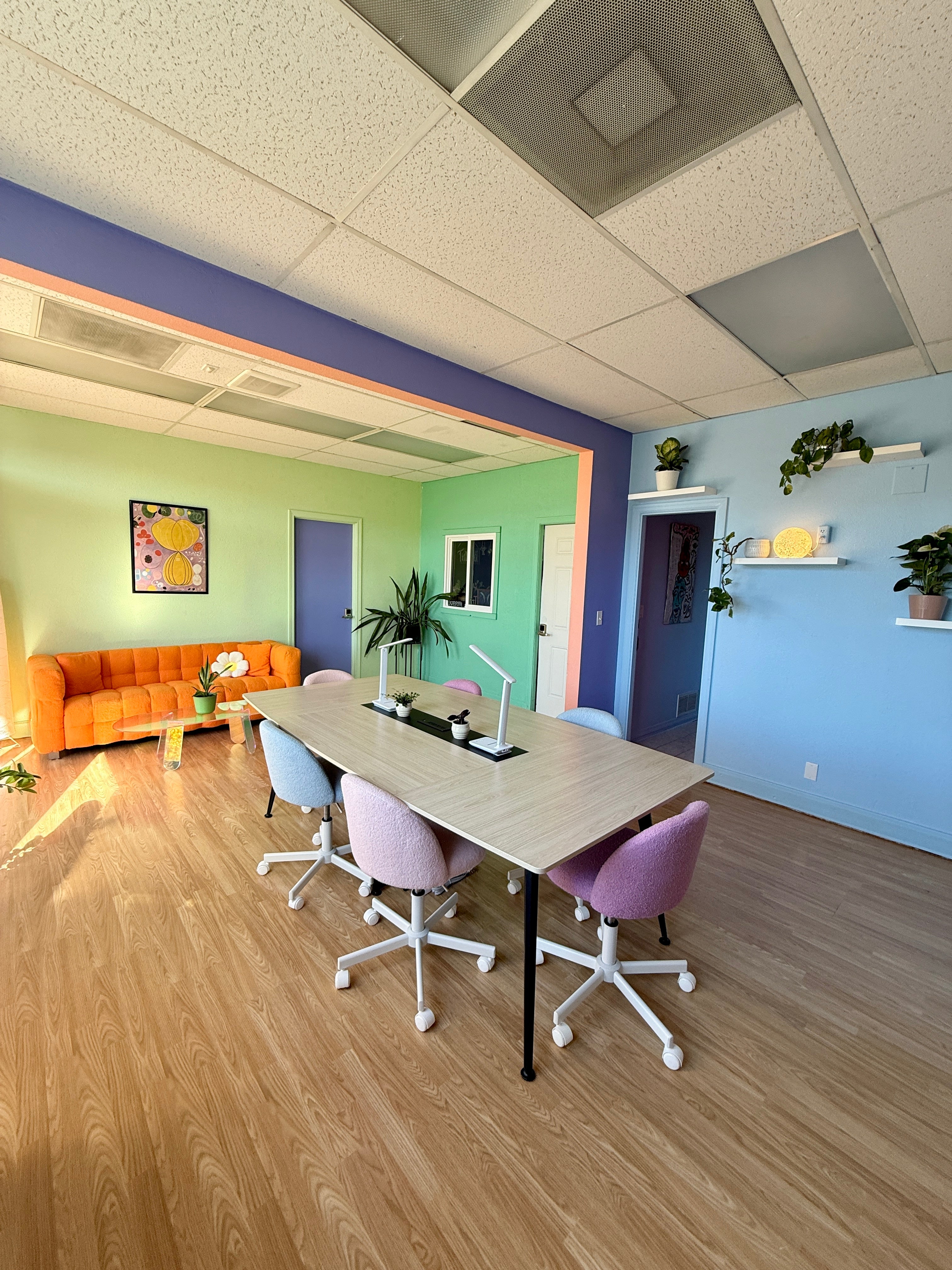 Join our brightly lit and colorful coworking space! 24/7 access with free wifi and power. Only 6 spots available.